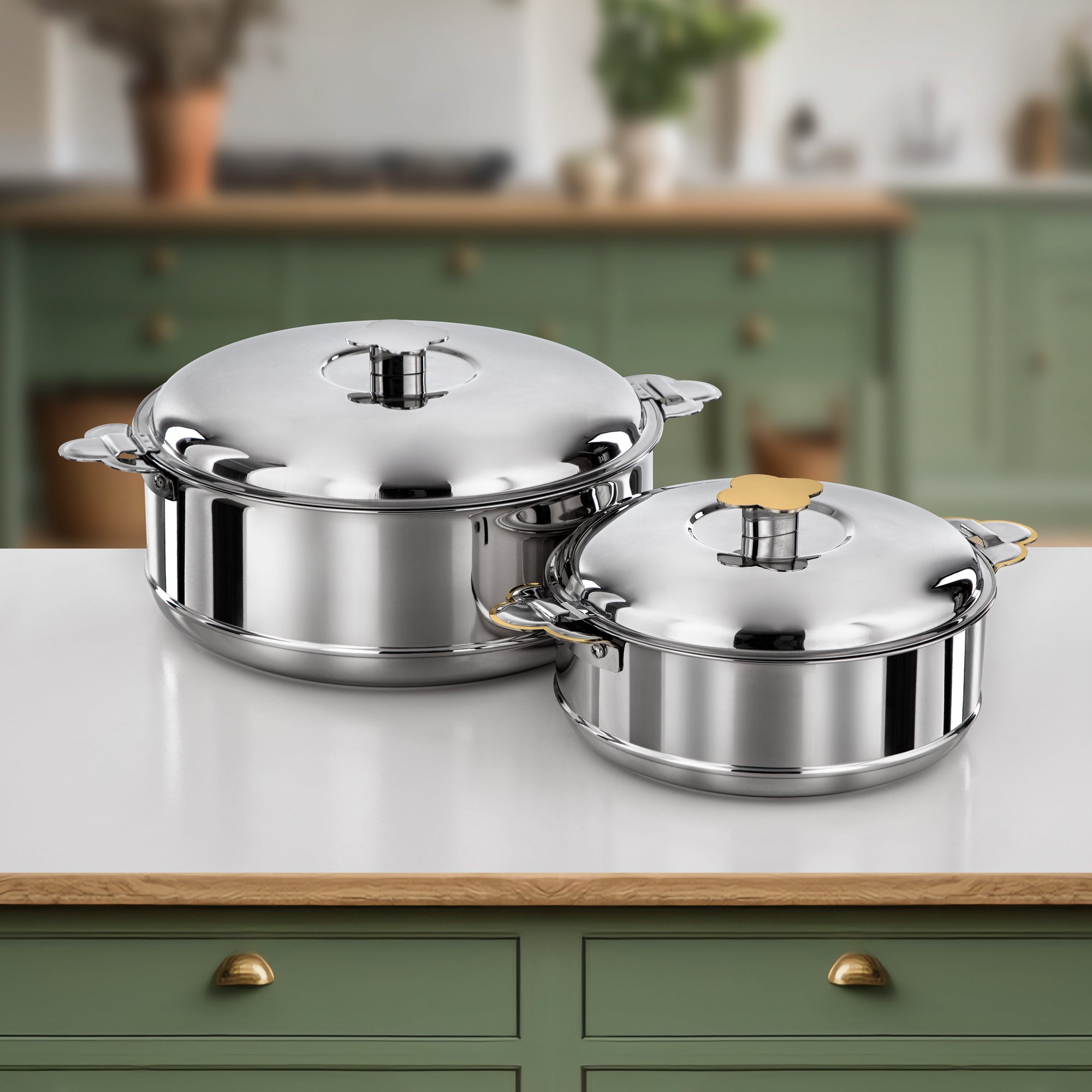 Almarjan Chafing Dish Stainless Steel 1.25L Silver & Gold (MD-3017) - Stylish Serveware