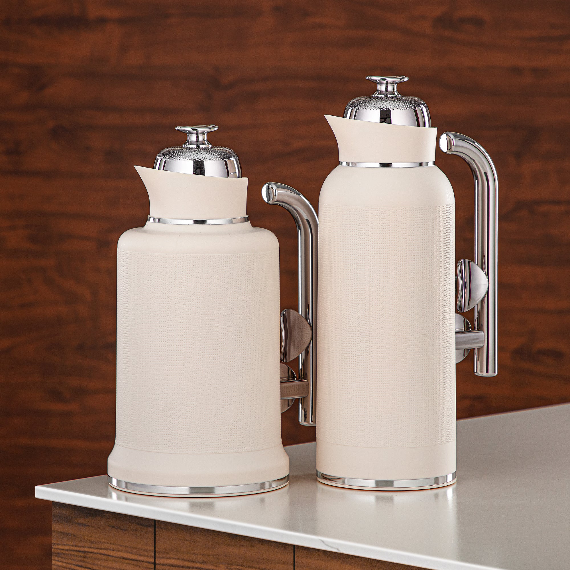 Almarjan Vacuum Flask Set, 0.7L + 1L, White & Gold (UBC-A0700/B1000 Q1ZC95) - Ramadan Serveware